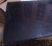 Склеил гламурную пластинку для рамы на свой вертолёт, внутри высокомодульный японский уголь семь слоёв на лицевые стороны положил дикаративный китайский уголь, получилось супер. С весом пока не известно, на одной стороне осталось оргстекло, весы до 500 гр. ругаются. Делал сжатием между стёкол ( трипликс на заказ 30 мм. толщиной) с двух сторон и струбцинами сжимал. На фото сама пластина без оргстекла.