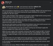В связи с независящими от нас обстоятельствами, которые вступают в силу немедленно, Mikado USA была вынуждена принять решение прекратить дистрибуцию китов и запчастей, по крайней мере, до конца сезона 2021 года в Северной Америке.