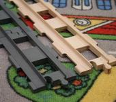 P.S. Если решитесь на Лего то не бегите в магазин за новеньким. Новенькие наборы 😦 не самое лучшее что в этой серии выходило. Посмотрите на e-bay старые комплекты в которых был локомотив с автоматизированным управлением. У такого внизу выступают две кнопки. Нажатие сразу двух его останавливает, нажатие правой заставляет свистнуть, нажатие левой реверсирует направление движения. К нему докупить стрелок, путей … и далее по бюджету. Специальные вставки бугорки на рельсы или секция с передвижным холмиком + стрелки в количестве хотябы 4 а лучше 6+ позволяет задать очень не тривиальную траекторию. Кстати о стрелках, они в лего бывают двух типов подпружиненные и перекидывающиеся. Старые подпружиненные, управляются поворотной ручкой. Новые рычажком и без пружинок. И те и те полезны для построения нетривиальной траектории пробега. В общем E-bay пока спасает.