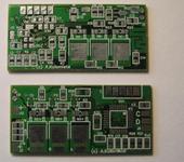 Сегодня получил готовые платы, разработанные мною на основании последней немецкой платы FlightCtrl для квадрокоптера (в которой используются гироскопы MEMS) и платы контроллеров двигателей. Размеры основной платы - 77,3х72,4 мм, плат контроллеров двигателей -50,4х24,4 мм.
