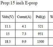 На графике видно как дела с пропеллером 12х6.0, так что делайте выводы чего получите при переходе на еще большие лопухи. Жрать будет по страшному. Также жутко жрет на всем, что меньше 12 дюймов