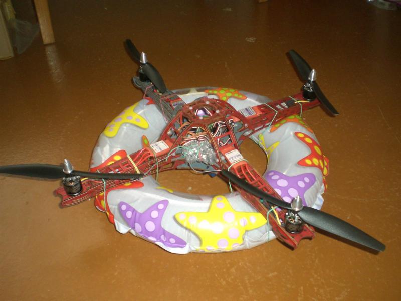 При ударе об землю страдают концы лучей,тут выручили шарики от вертолетных треников,на 2210 моторах и винтах 10+6,аппарату надо добавлять вес иначе он подвержен влиянию даже легкого ветерка,но если баланс нарушен(очень любит правильную центровку),то тут приходит на помощь и вертолетный и самолетный опыт.