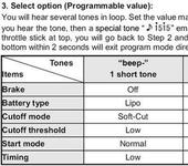 Берёте приёмник, подключаете к третьему каналу ESC_#1, даёте полный газ на пульте, и даёте питание на ESC. Мотор должен сделать трям-пам-пам сколько-то раз (см. мануал), и в какой-то момент надо сделать газ вниз. После трям-пам-пам можно отключать питание, т.е. контроллер переходит в режим программирования (см. мануал опять же). Вам до кучи надо зайти в режим программирования, и выключить отсечку. Разбирайтесь, что бы в полёте не словить выключение двигателя.