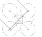 Я себе примерно тож самое нарисовал, учитывая что винты 9-ки максимум, получилось 30см между ближними моторами…