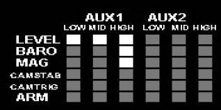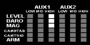 потом в среднем режиме MID чтоб были: ANGLE + BARO