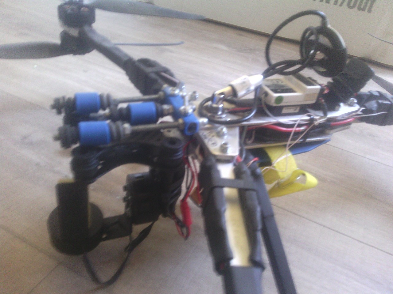 Да не! Всё нормально! Фотки делал на старый телефон, поэтому такое мега качество. На гексе стоит наза в2 настоящая. Рама алюминий 3мм основа, мотормайнты фрезерные из 5мм алюминия. Там конструктор по сути. Этим я сделал так, чтобы камера в лопасти не попадала. Сейчас полетал чтобы определить есть желе или нет. ЕГО НЕТУ!!! Алилуя!