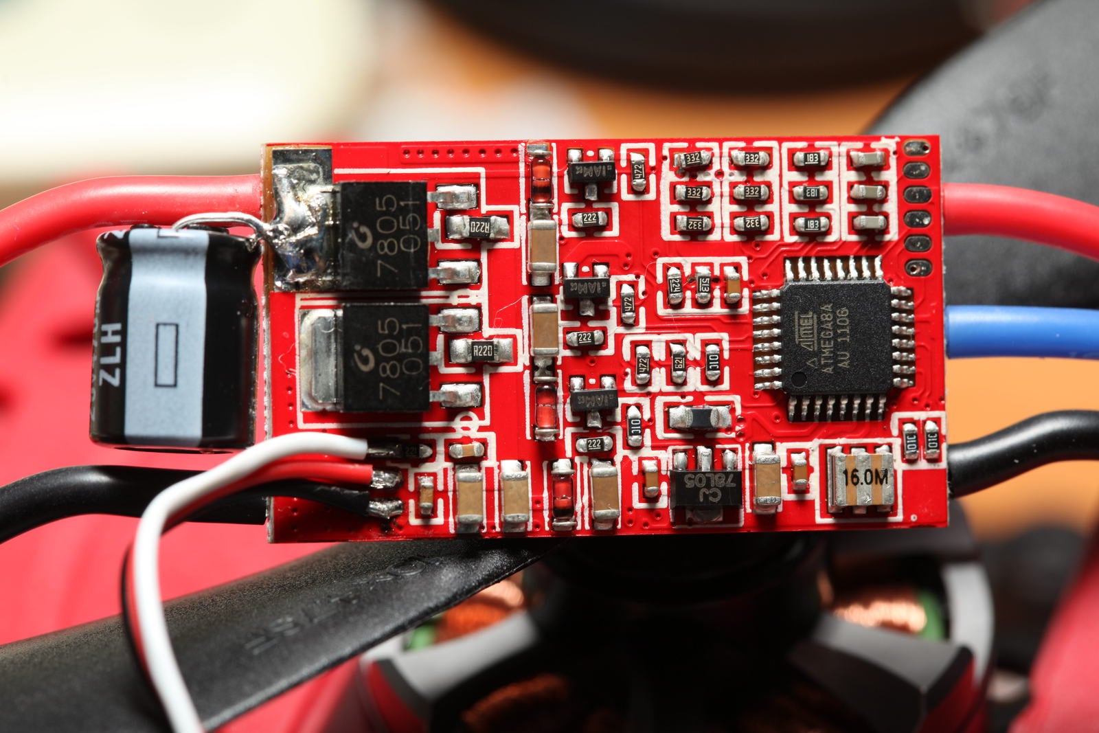 Первый сгорел просто при подключении к 3х баночной липошке 2200, второй сразу повторил судьбу первого. третий пожил подольше. вошел в режим программирования, для уверенности поставил ему тип LI-PO. соединил с мотором и на 5 ой секунде работы мотора тоже из него пошел дым. моторы 750 кв. оставшиеся два регуля с ними работают нормально.