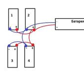 А вообще оптимальной будет схема “звёздочка”, где толстые провода от батареи разветвляются на 4 менее толстых в одной точке.