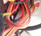 - возвращаем красные провода в их посадочные места на разъемах (на фото видно что среднее гнездо в разъеме пусто… оно как раз для этого провода… и видно по термоусадке - что коннекторы не срезаны, что уже хорошо…) предварительно освободив концы красного провода от термоусадки (и да не забываем после всех работ снова вынуть их из разъемов и снова заизолировать… термоусадкой или изолентой…)