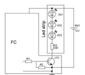 Всё подключается напрямую, минусы на порт контроллера, плюсы в кучу и к банке.