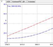 Изменение входного импеданса и усиления в зависимости от частоты: