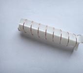 В качестве опорного элемента берём шток от разового шприца 20 кубиков, который белый и без резинового поршня. Отрезаем верхнюю часть, а в нижней вырезаем два сектора. На рёбрах штока делаем разметку правой восходящей спирали и по разметке делаем углубления под проволоку диаметром и глубиной 1 мм.