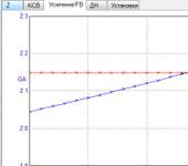 Изменение входного импеданса и усиления в зависимости от частоты: