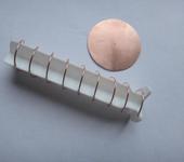 В качестве опорного элемента берём шток от разового шприца 20 кубиков, который белый и без резинового поршня. Отрезаем верхнюю часть, а в нижней вырезаем два сектора. На рёбрах штока делаем разметку правой восходящей спирали и по разметке делаем углубления под проволоку диаметром и глубиной 1 мм.