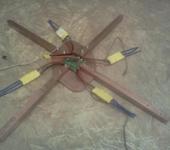 этаж с лучами- там толко провода, следующий вверх-регуляторы моторов, третий-мозг и приемыш, еще выше пластиа, на ней будет камера. нижний лист- подвешена батарея. Когда всанет шасси с подвесом, появится ее один этаж,там будет находиться видеопередатчик и АП.Поздне еще выложу видео, фотки и новые ТТХ. Вданной комплектации взлетает ниже половины газа, но видео пока нет.