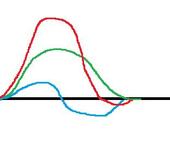 где зеленым-скорость, синим-ускорение, красным-сумма.