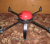 Шляпа фиксируется просто на липучке, цели увеличивать жёсткость за счет крепления шляпы не было, дальше планируем вообще шляпу делать вакуумным формование из поликарбаната, жесткость конструкции придает полка крепления приемника,контроллера, и БЕКА Назы. На первом экземпляре собранном, вообще не усиливал не чем , хотелось ваяснить достаточно ли жесткости, идея была такая при средних ударах рама должна с демпфировать, если будет слишком жесткая что-нибудь снесет точно. Вот фотки первого собранного изделия Размер 700мм между двиг. двигатели Т-мотор 2814 к/В 710, регулы Хай-модел - профи 30ампер( с назой запустились нормально), винты 12/4.5 , контроллер НАЗА, аккамулятор нано-теч 4.5 ампер. Весу много нагнал радиаторами надо поменьше их хватает за глаза, и ноги надо формованные они уже в процессе исполнения, те что сейчас стоят пластина д-16т тяжеловаты. В итоге вес получился 1530 гр. Новая будет легче. Летные испытания прошли успешно квадрик без моего участия летат гораздо лучше чем когда я им рулю. В итоге из 5 полетов в трех минус 8 винтов. Пробывал его об планету с высоты до двух метров так ничего все получилось достаточно крепко. Вот видюха крайнего полета, качество правда дрянь снимали мыльницей , да и руки у жены дрожали почему-то. в предидущем полете мимо нее пролетело пару лопостей от двух поломанных винтов- не пойму что она так разволновалась.