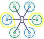 Проверил я вариант где все пропы на лучах крутятся в разные стороны, но только на боковых лучах - в одну. Не работает. Коптер при рулении по яву пытается взлететь вверх. Не вариант.