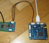 Подконнектился к FTDI-шному разъему, тока надо tx платы соединять с rx блютуса, и наоборот.