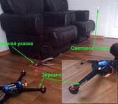 А я вот таки попробовал отбалансировать с лазерной указкой, реально работает способ! Перед этим пробовал балансировать просто держа за луч рукой, точность не особо, по световому пятну на порядок точнее и проще. Вибромер (программный, акселерометр телефона на андроиде) ничего толком показать не смог, погрешность огого. Итак, нам нужна лазерная указка (куплена на лотке с китайским барахлом) и зеркальце (выковырял у жены из набора теней 😁 ) Приклеил зеркальце к лучу на двусторонний скотч, направил на него луч лазера, получил лазерный “зайчик” на стене. (см рис. 1) До стены пару метров, ширина зайчика в покое была около сантиметра, в самом худшем измерении где-то 6 см. Удалось по всем моторам результата для пятна в 1.5см, меньше ни как. Хотя вчера все калибровал руками два мотора изначально давали такое пятно, а по двум остальным было 2см и 2.5см. Клеил сначала наклейки которые изначально наклеены на моторы, если было мало добавлял изолентой. Не уверен насколько надежно но ничего другого у меня нет 😦