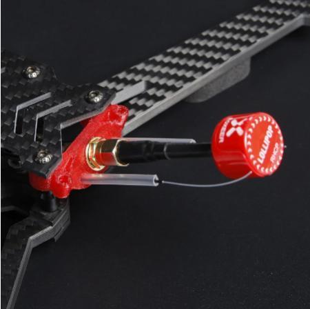 Два задних винта держат карбоновую пластину на стойках. Если под них подложить кусок пластика, скажем, от кредитной карты и т.п., который немного выдается назад над карбоновой пластиной, и уже в этот кусок прикрутить разъем антенны, то он будет и держать, и изолировать, и также при аварии он будет сгибаться.