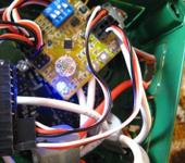 Добрый день! Подключил контроллер i86 Multi-Rotor к приемнику Turnigy 9X 9 каналов . Передатчик Turnigy 9X9Ch. Вот фото. Загорается синий свето диод и все .На пульт двигатели не реагируют. Что делать? Может настройки на пульте не таксделал? Напишите, пожалуйста, какие на пульте параметры должны быть дляквадрокоптера? И что вообще делать?