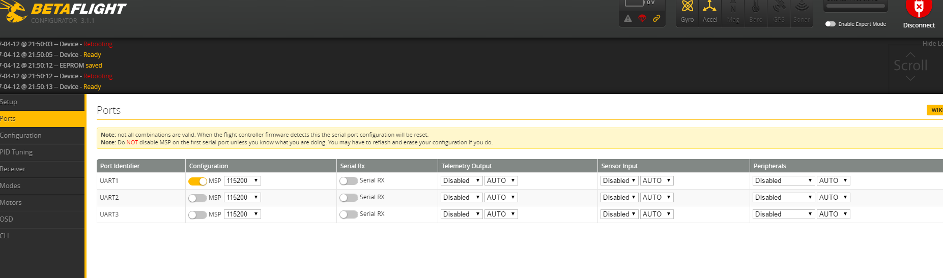 Проблема: Захожу в BetaFlight > Reciver. Кручу ручки аппаратуры , коптер вращается на экране корректно. Далее отключаю коптер от компьютера. Даю газу, но моторы полностью молчат и не реагируют ни на киакие действия аппаратуры. Примерно через минуту моторы сами включаются на полную мощь, при этом они откликаются на управление, но всё равно вращаются при любых положениях ручек/стиков и их невозможно остановить пока не отключишь акум.