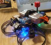 Рама Foxeer Foxwhoop25, FC hakrc 7xx, моторы HM 1404 3500kv, RX elrs, пропы 2.5", акк GNB 4s HV 850mah, VTX OVX303, видеописалка Runcam Split 4, внешний логгер OpenLog, плата RealPit чтобы перезагружать плату логгера передергиванием питания, GPS приёмник BN-180, серва для наклона камеры вверх-вниз и матековская плата на 5v чтобы серву запитать от аккума, а не от полетника. Включение/выключение записи видео в полёте потребовало три канала и программирования логики их работы логическими свичами на пульте. Полученные видео и гироданные понимаются программой Gyroflow. Места внутри капец как мало, но удалось впихнуть невпихуемое. Раму немного подпилил, RealPit и OpenLog позади камеры снизу разместил. Портов полëтника хватило впритык.