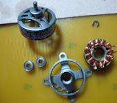 из плюсов мотора - разбирается полностью очень легко, старая обмотка снимается тоже легко, весит 40гр. минус один - нет резьбы на роторе, но там 3 отверстия по окружности, поэтому крепить элементарно просто насквозь винтиками, так что в ощем то не минус совсем