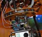 Вроде собрал все, сделал видеолинк, откалибровал входы от внешнего полетного контроллера… Все работает,радует глаз. Единственное что координально пришлось поменять,это площадку с демферами. Они оказались мягковатыми,диаметр площадки маловат для такого плеча подвеса. Болтался как сосиска 😃 на веревочке 😁 . Увеличил диаметр площадки в пять раз и разместил демпферы по окружности. Сейчас маятниковых движений подвеса практически нет вообще, а в горизонтальной плоскости отрабатывает вибрации на высоте. Желе отсутствует. Вот что получилось.