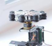У меня собрано было по другому: мотор нужно развернуть на 180 градусов, к раме крепится таким же способом как и у Dronavt’a а к коптеру с помощью текстолитовой пластины в которой просверлено отверстие по середине и трех отверстий вокруг под крепеж. Именно так делают в aerocam. [IMG]http://