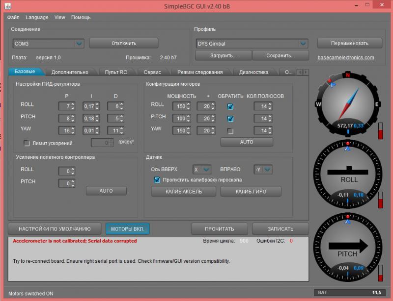 Теперь работает аж почти идеально, боюсь сглазить даже, сколько вечеров просидел))DYS 3 Axis Smart Gopro Brushless Gimbal