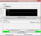 При заливки прошивки выбрал Arduino pro or mini pro (5v 16 MHz), прошивка нормально залилась. С помощью GUI конектится нормально, но нет данных с гироскопа (полоса прямая)