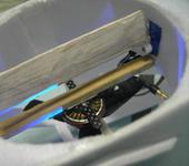 Под передний винт поставлен уже проверенный вариант руля в потоке винта, для управления курсом. Серва врезана в бок кольца, качалка сервы приклеена к бальзовому рулю.