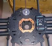 Собралось без вопросов, деталюшки качественные. Раздатку питания делал 2-мя AWG12 по кругу с пайкой нарпотив лучей. Вся эта байда пошла на самый низ рамы. Внутрь рамы впихнул только моцк, ровно посередине. Наза как раз подходит под размер чтобы ни один луч ее не коснулся. Остальная электроника (приемыш, телеметрия, ГПС) - сверху. Регули тулил на лучи ближе к раме, притянул стяжками, на клейкой основе чтобы не проворачивались. Диодные ленты - аналогично.
