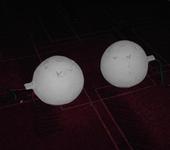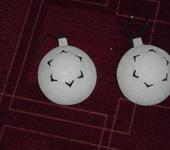 Закрыл в шарах ненужные теперь отверстия, оставшиеся от импеллеров. Шарики покрасил в белый цвет. Прорезал вверху шаров галко-подобные прорези. Работа идет споро и интересно.