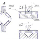 на виде “а” показан задуманный профиль луча. как бы все просто и понятно. Два сегмента, по три ребра жесткости на каждом с основным профилем сопротивления в вертикальной плоскости. На виде “б.1” показан процесс гибки (как он должен был проходить) на матрицу кладется заготовка, причем ширина опорной части должна быть больше ручья “6*”. Тогда гиб проходит точно. И как раз тут вышел косяк… матрица с 6м ручьем накрылась “медным тазом” и незадачливый гибщик сделал все на 12й матрице (вид б.2.) как видно на этом виде опорная часть проваливается в ручей и не гнется как задумывалось… в итоге имеем луч с профилем как на виде “в”. По сути в вертикальной плоскости они сохранили свою жесткость, а вот в горизонтальной, относительно тестового образца, сильно потеряли.