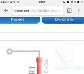 возьмем 5.0к, в среднем положении, чтобы у нас была возможность маневра, 2.5к. Напряжение батареи ~12В нам нужно понизить до ~1В, т.е. поделить на 12. Считаем второй резистор делителя = 12 * 2.5к = 30к