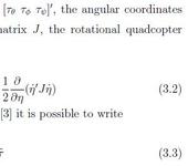 Проблема в понимании общей формулы тяги(!) т.е. непонятно где взята или как прощитана матрица инерции, я так примерно прикинул то что все уравнение тяги в принципе это обычное диф. уравнение 2го порядка и сложного ничего нет но эта матрица инерции и последний член этого уравнения не дают мне покоя и из за этого не понимаю сути уравнения! Во вложении я прикрепил фото это самой злосчастной формулы вырезанной из одной из множества работ по расчетам связанным с квадрокоптерам, есть конечно же и русскоязычные но там срезается множество переходов и опять же ничего не ясно