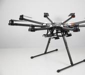 Интересный вариант складывания рамы, я так понимаю, единственно возможный. Странно, что на такой здоровой раме всего одна батарея, как мне кажется, для профессиональных целей важно время полета, чтобы не приходилось часто садиться и менять аккумуляторы.