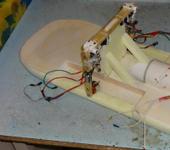 При постройке модели СВП это решается просто - сдвигом ЦТ назад. В данной модели ЦТ должен быть точно под поперечной балкой, значит такой способ не подходит. Пробую развернуть поток вперед, используя полукруглые направляющие.