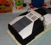 Некоторое время ломал голову о покраске модели. Возвышение над поперечной балкой натолкнуло на мысль, что ее (поперечную балку) можно замаскировать под полицейские мигалки. А значит покраска будет под американскую полицию. Почему американскую? Ответ прост: они эффектнее смотрятся, чем российские. Начал покраску, фото внизу.