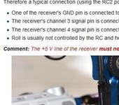 Привет, народ подключаю контроллер к приемнику для питча на 8мой канал в rc2-0 по 2м проводкам минус и сигнал: