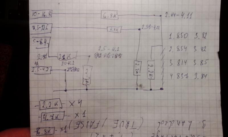 Вроде никто так и не собрал схему делителей напряжения, а я решил попробовать.