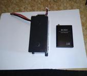 Но,теперь надо все смонтировать.И очень красивое решение,мне показалось,если разместить приемник RC805 с верху аккумулятора.Но возникает вопрос,не будет ли помехи от аккумулятора на приемник?Плата приемника заключена в корпус из тонкого металла,а аккумулятор находится в пластмассовом корпусе, и зазор между аккумулятором и приемником 8 мм.