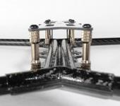 Всем привет. Предлагаю вашему вниманию раму для дальнолета 7" собственной разработки. Главная идея была сделать максимально возможно легкую и достаточно жесткую раму. Получилась конструкция из карбоновых трубок 10мм на лучах и профильным основанием центра (автобуса). На раме можно разместить два стека 30.5 Х 30.5, крепление под микро камеру 19 Х 19. Вес рамы в сборе составил 60г.