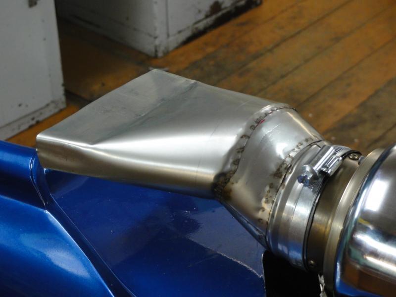 следующая - воронка приварена под углом к трубе одетой на турбину. Сечение на выходе максимально повторяет контур окна.