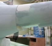 Работа над створками шасси. Оказалось, что не только стойки разного размера в виду перекоса фоюзеляжа, но и сами створки и зализы отличаютс весьма сильно. У нас разница получилась почти 5 мм., т.е. на настоящем около 5 см. Вроде как и не много, но несколько дней пробывали, срезали ломали голову почему не сходится, пришли к выводу что разные. Видео в подтверждение. Спасибо Дмитрию за видео. 100letvvs.ru/?r=video&s=101