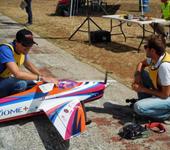 Любопытная деталь. Американский пилот Andrew Jesky этим летом испытывал соосный редуктор системы американца Brenner Sharp на паре своих идентичных моделей. Должного впечатления от новой системы не получилось, в связи с чем, а также учитывая погодные условия, на Чемпионате мира 2013 в ЮАР он применяет традиционную силовую установку на базе Q80 и пропеллера Falcon. Еще одна примечательная деталь – Эндрю удерживает передатчик 3D-шным хватом.