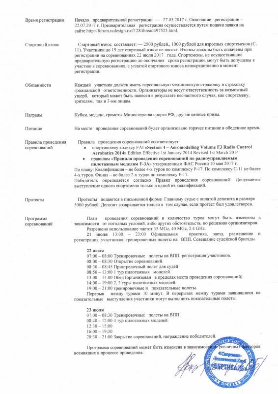 Даты проведения : 22-23июля 2017 года , 21июля день свободной практики . Дополнительную информацию можно узнать здесь: www.f3a-russia.ru